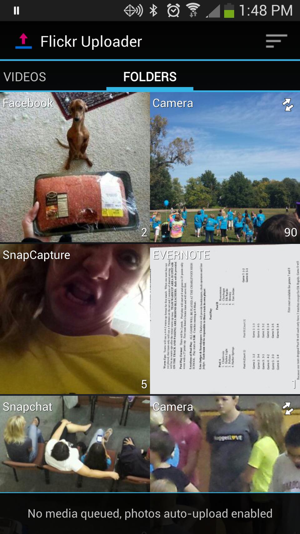 On my phone, a Galaxy S4, I find it cumbersome to upload photos directly to Flickr, so I bought Flickr Uploader from the Google Play store, and now all my photos are uploaded to Flickr instantly when I take them. Options are available to limit uploading to Wi-Fi only, or to upload only certain kinds of photos (camera photos but not screenshots, for example). The application is $4.99, but the developer has created “coupons” to get the application for a huge discount or even free (https://github.com/rafali/flickr-uploader/wiki/Coupons).