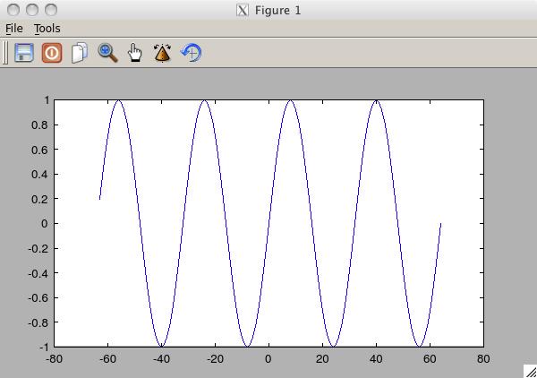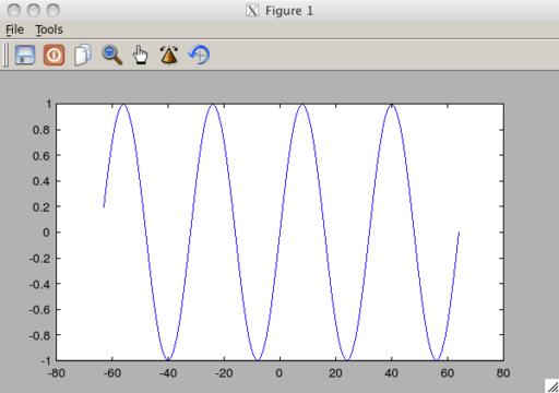 --> t = -63:64; --> signal = sin(2*pi*t/32); --> plot(t, signal)