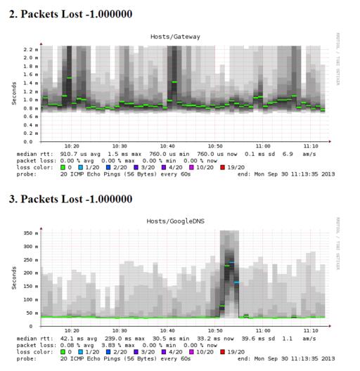 With past ISP problems, I've been able to run a continuous ping to an outside IP address and show the tech-support representative that I have packet loss. Unfortunately, a running ping command doesn't give a history of when the packets are lost. With SmokePing, not only is there a record of when packets are lost, but there's also a graphical representation of how many packets were lost, and from several IP addresses to boot.