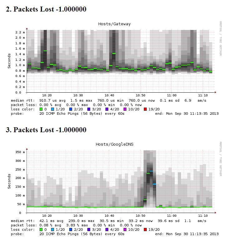Notice packet loss to the Google DNS server, but none to my gateway. So, the problem isn't with my house connection.
