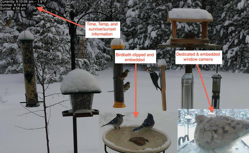 Figure 1. BirdCam has changed a lot. Here, the biggest changes are highlighted. Also, look at all those birds!