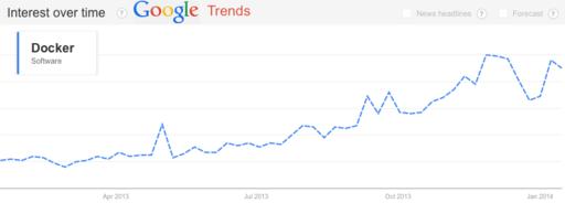 Docker started life as an open-source project at dotCloud, a cloud-centric platform-as-a-service company, in early 2013. Initially, Docker was a natural extension of the technology the company had developed to run its cloud business on thousands of servers. It is written in Go, a statically typed programming language developed by Google with syntax loosely based on C. Fast-forward six to nine months, and the company has hired a new CEO, joined the Linux Foundation, changed its name to Docker Inc., and announced that it is shifting its focus to the development of Docker and the Docker ecosystem. As further indication of Docker's popularity, at the time of this writing, it has been starred on GitHub 8,985 times and has been forked 1,304 times. Figure 1 illustrates Docker's rising popularity in Google searches. I predict that the shape of the past 12 months will be dwarfed by the next 12 months as Docker Inc. delivers the first version blessed for production deployments of containers and the community at large becomes aware of Docker's usefulness.