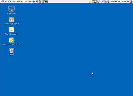 Tails uses the all-too-familiar GNOME 2 desktop (Figure 2) with a panel along the top containing Applications, Places and System menus; a few icons for application shortcuts; and a notification area to the far right that lists the time along with icons, so you can see the status of the network, Tor, your battery (if you are on a laptop), a PGP applet and even an on-screen keyboard you can use to enter passwords if you suspect your computer might have a keylogger installed.