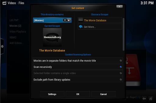 Figure 2. Be sure to select the type of video files in your source, so the scraper can download your metadata.