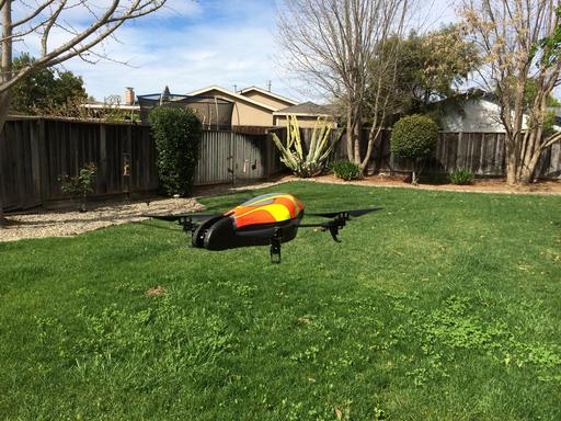 Once you have drone-browser running, you can control the A.R. Drone via keyboard commands or button-presses in the Web browser window. Be warned, however, that the controls are not nearly as refined as the smartphone application, and there is no “auto-stop” command. When you command the drone to fly forward, it will—until it receives a stop command or runs into an obstacle. Don't do what I did and attempt this in the house—I nearly ran the drone into my wife as she sat at her desk.