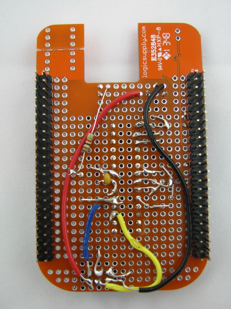 The benefit of using a protoboard is that you will have a much more stable prototype, both electrically and mechanically. However, it requires more of a time investment and significantly more soldering. The protoboard also requires some 0.1" male headers to attach into the BBB's expansion headers. You could get away with soldering just the pins that are used in this project, but I recommend attaching the entire 2x23 male headers.