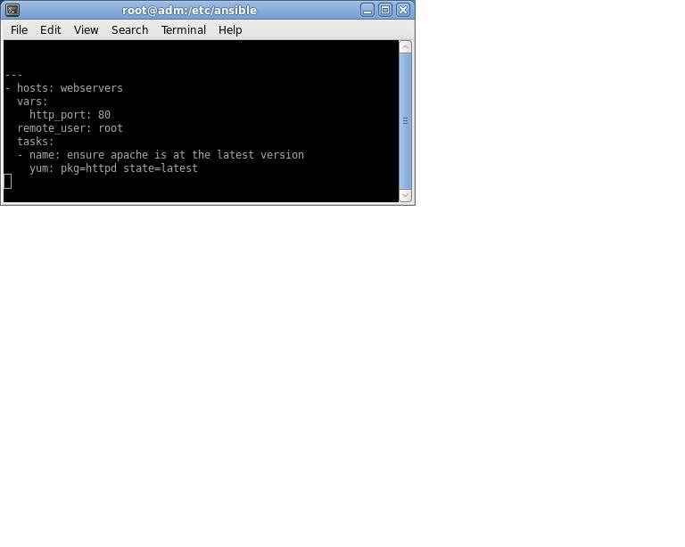 Ansible uses a very simple method called playbooks to orchestrate configurations. A playbook is a set of instructions written in YAML that tells the Ansible server what “plays” to carry out on the target hosts. YAML is a very simple, human-readable markup language that gives the user fine granularity when setting up configuration schemes. It is installed, along with Ansible, as a dependency. Ansible uses YAML because it is much easier to write than common data formats, like JSON and XML. The learning curve for YAML is very low, hence proficiency can be gained very quickly. For example, the simple playbook shown in Figure 1 keeps the Apache RPM on targeted Web servers up to date and current.