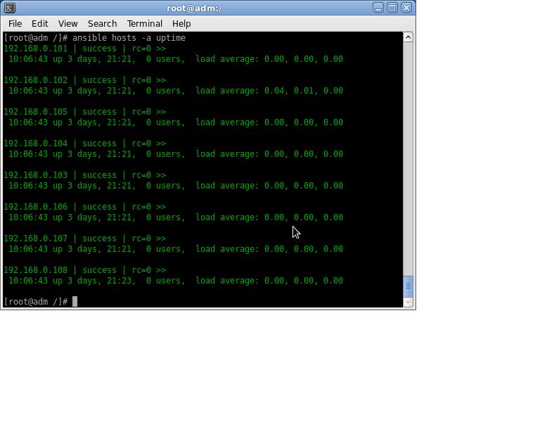 Figure 2. Example of ad hoc Command Showing Uptime Output for All Targets