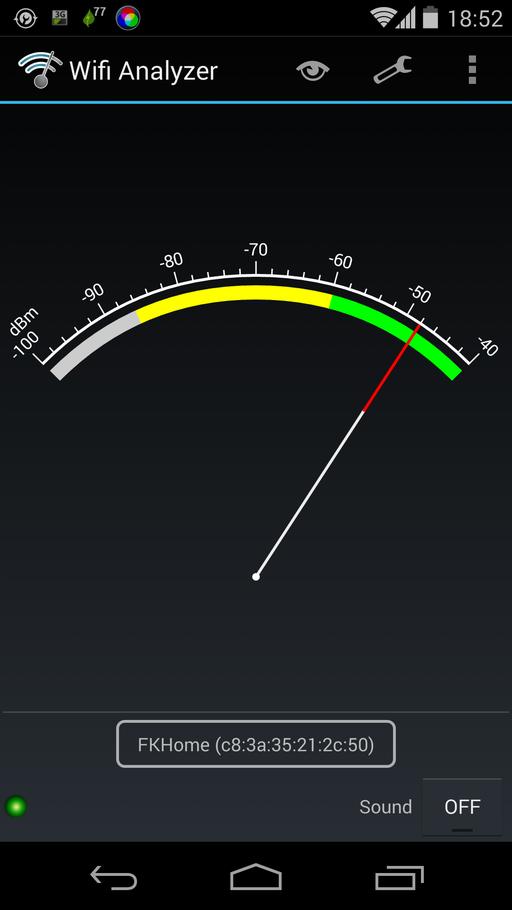 Finally, the most entertaining function (which will make you feel like a grizzled old uranium prospector, walking around with a Geiger counter looking for ore) shows a dial with a “needle” showing the current signal strength of the AP to which you are connected, and it even adds the option of beeping in proportion to the strength. Walk around, closer or farther away from the AP, and the pinging rate will vary. This will let you determine the best place for an antenna, router or repeater, and it also lets you know if the signal strength is what you expected.