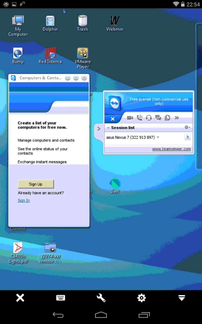 While the session is open, you not only can work remotely, but you also even can perform special actions, such as rebooting the machine or locking your helper out, so only you will be able to work. You won't need a Hacker's Keyboard with this app, as the app can show a virtual overlaid keyboard, which lets you simulate all keys, such as Ctrl, Alt and the Meta (or Windows) key.