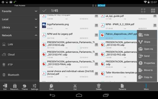 Apart from directly connecting to a server, you may need to upload and download files. (Of course, for just editing a file, a remote access solution does the job, but you might prefer to download the file to your tablet, edit it there with a better editor such as Jota+, and then upload it again.) Out of many available file browsers, I find ES File Explorer to be the most useful. You not only can browse local files (even the “/” directory, on rooted devices), but you also can use several Web protocols (SMB, FTP, FTPS, SFTP and WebDAV) and cloud services (Box, DropBox, Google Drive, S3, Skydrive, SugarSync, Yandex and Ubuntu One), working with remote files as if they were local to your device.