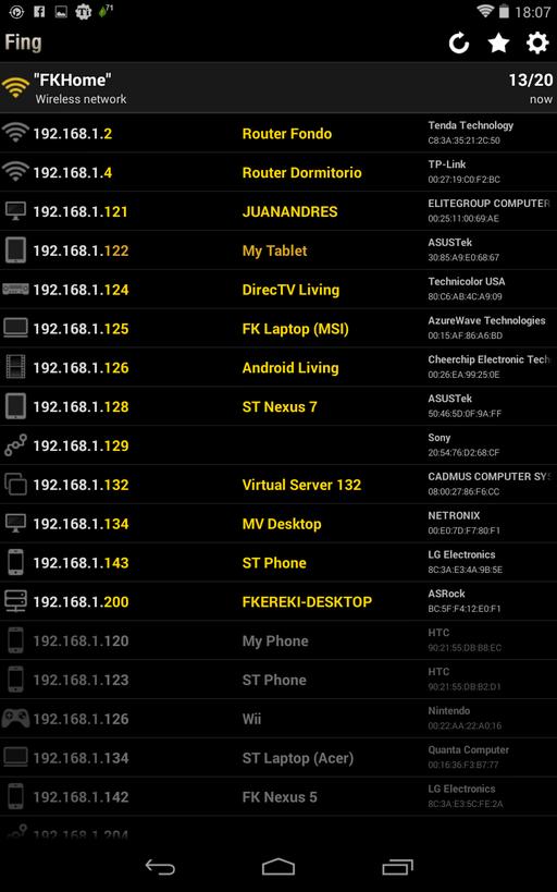 Fing's main screen provides a network discovery report, which shows all equipment (Wi-Fi, Ethernet) in your current network.