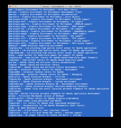 If you run the following command on a Debian 7 system to find all packages that contain the word “opengl”, you'll get plenty of output (Figure 1):
