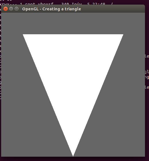 The output from the executable will produce the triangle shown in Figure 3. The correct compilation of triangle.cc is proof that your Linux system can be used for developing OpenGL applications.