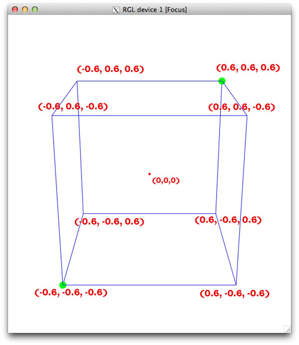 Figure 6 shows the coordinates of the vertices of the cube for x=0.6, y=0.6 and z=0.6. Note that the vertices that define an edge have two out of their three coordinates exactly the same.