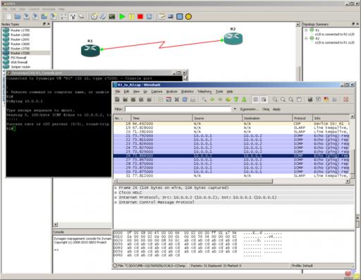 GNS3 is an open-source application that creates a virtual infrastructure of Cisco (or other) hardware. Not only can you watch the traffic flow, but you also can connect directly to the virtual devices and configure them like the actual hardware devices they represent. On the surface, it looks like a Visio diagram, but it's a diagram that actually does something!
