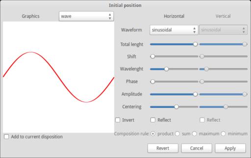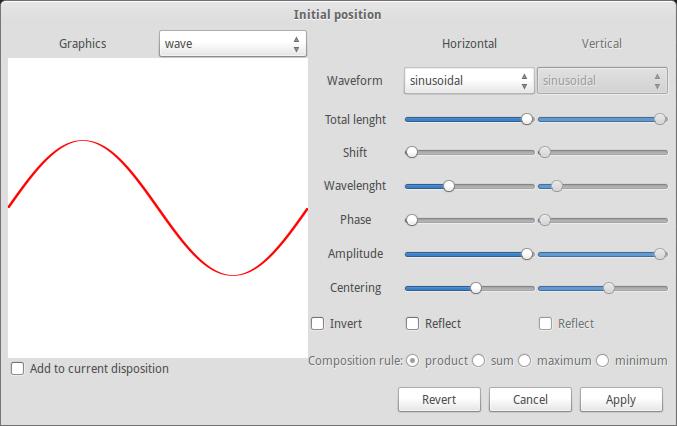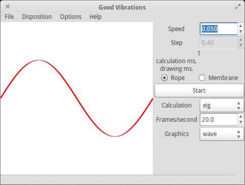You still are limited to sinusoidal, triangular, square and peak waves as your base forms. If you have something even more complicated in mind, you actually can define the amplitude and speed at each point in a text file. For example, to model a string, the text file will have three lines. The first line will contain the shape—in this case, the number of points along the string. The second line will contain a series of amplitude values, comma-separated, one for each point. The third line will contain a series of speed values, comma-separated, one for each point. You next need to end the file with a new-line character at the end. Then, you can read this into gvb to provide your starting waveform. This gives you maximum flexibility. You can do the equivalent two-dimensional input file if you want to model a membrane rather than a string.