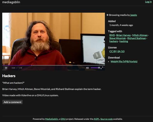 Hosting your own local version of YouTube might not be your cup of tea, but for me, it's a great compromise between convenience and data privacy. If you want to give MediaGoblin a try, head over to www.mediagoblin.org and download a copy today. Or, check out one of the many publicly hosted installations to see if you like the interface. The screenshot here is from roaming-initiative.com/mediagoblin/u/jeeelo/m/hackers and includes an interview that hits home for nerds like us!