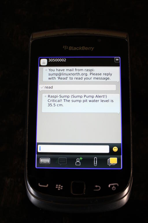 In June 2013, we had the unfortunate luck of a basement flood, caused by a tripped electrical breaker connected to our sump pump. There are so many things that can go wrong with a sump pump. You always are on guard for power outages, blown breakers, sump pump failures, clogged pipes and all manner of issues that can arise, which ultimately can end with a flooded basement. I needed a way to alert me of issues when I was not at home. Audible alarms are fairly cheap and are great when you are physically in the house. They fail miserably when you are ten miles away at work. I had a Raspberry Pi that I had tinkered with periodically but for which I never had a real purpose. I decided to try to put the Pi to work as a dedicated sump pit monitoring device. Hopefully, the Pi could send me SMS alerts if a problem arose while I was away.