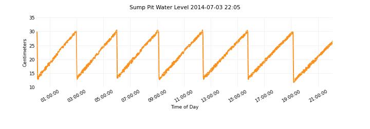 • Regular one-minute-interval readings of the water depth in my sump pit.