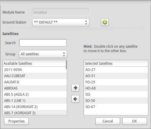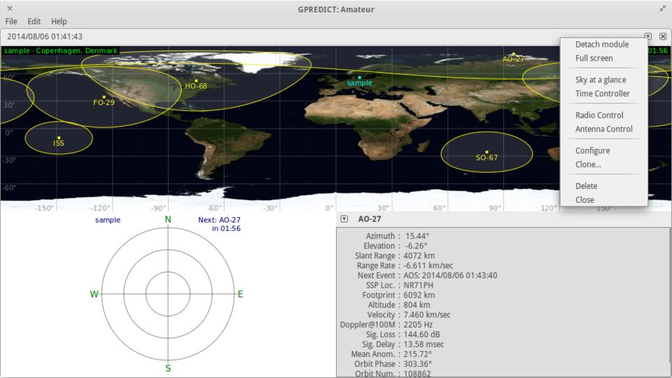 Once you have it installed, you can start it with the gpredict command. When it opens, you should see the main window, with a sample layout given by the module named “Amateur” (Figure 1).
