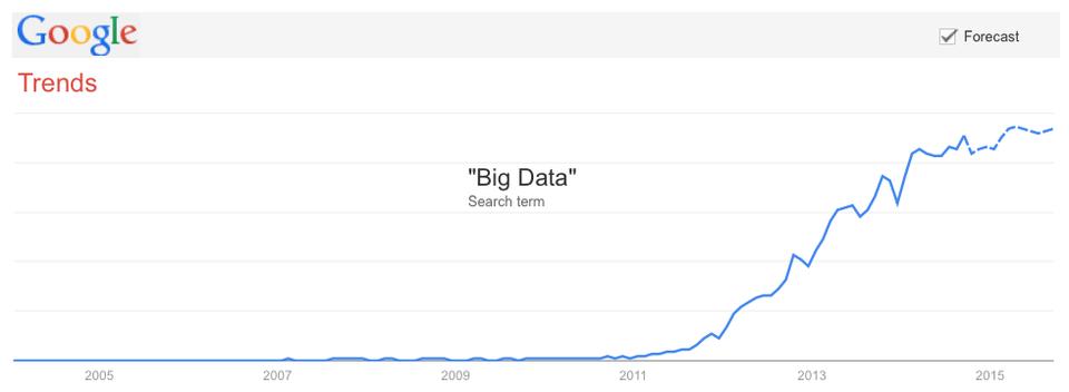 Lots of the pitching talked about science and health, where the advantages of more data always have been obvious. On the science side, that imperative surely helped sway the NSA toward Trailblazer and PRISM and away from ThinThread, which was about doing more with less. But now the Big Data meme is hitting a plateau, as you can see in the graph in Figure 1. There is also a backlash against it (www.economist.com/blogs/economist-explains/2014/04/economist-explains-10), given the degree to which we also are surveilled by marketers. In “How Big Data is Like Big Tobacco—Part 1” (www.forbes.com/sites/sap/2014/08/26/how-big-data-is-like-big-tobacco-part-1), Tim Walsh, SAP's Global Vice President, Customer Engagement and Commerce, writes this for Forbes: