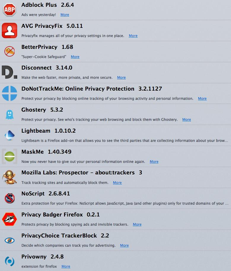 Figure 2 shows all the extensions for ad and tracking blocking I've added in Firefox.