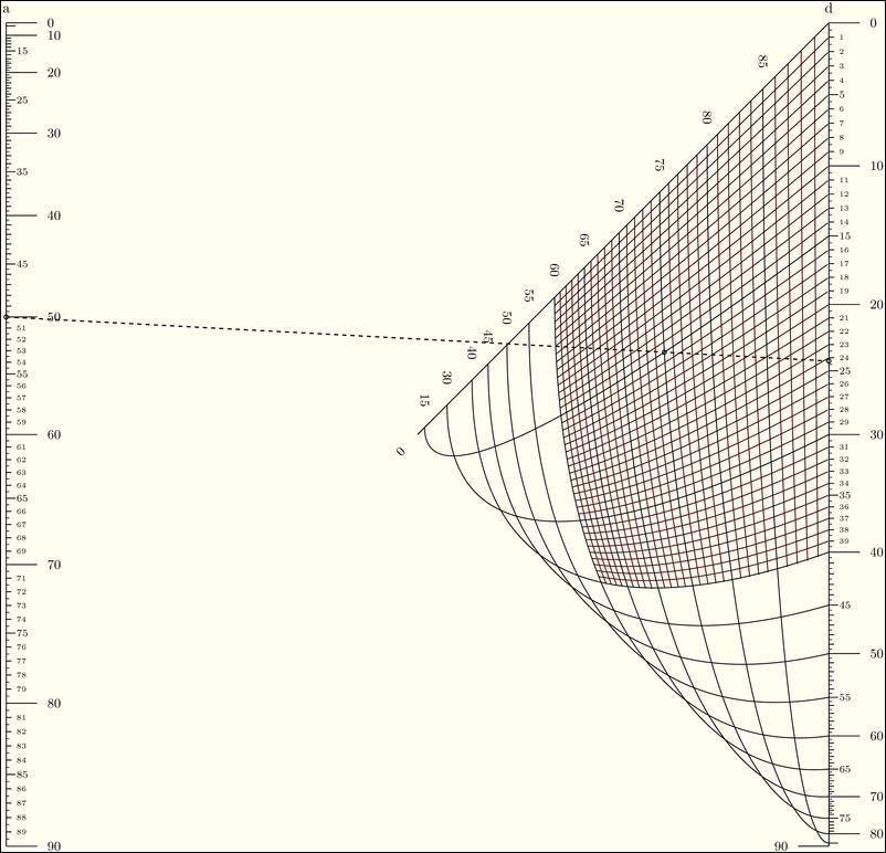 Once this nomograph is constructed, you can use it to compute the altitude azimuth.