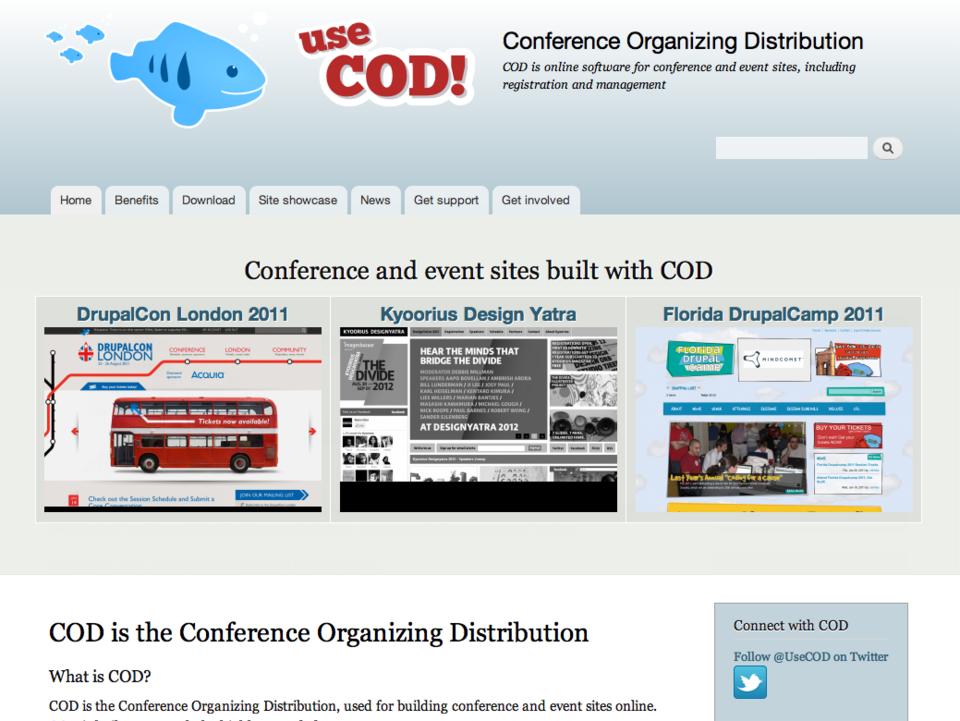 Conference and event organizing — COD (Conference Organizing Distribution, usecod.com) is a complete conference and event site that you can customize. It includes e-commerce, session submission and voting tools, multi-track scheduling and more.
