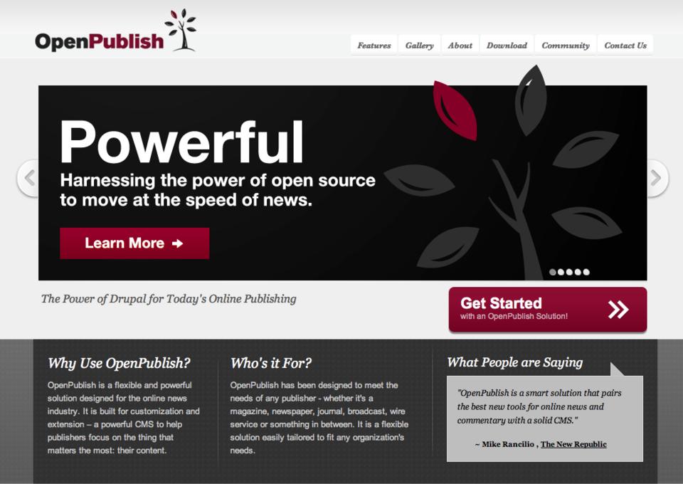 Publishing — OpenPublish is designed for the on-line news industry (openpublishapp.com). It contains a powerful suite of content, curation, audience engagement and taxonomy tools to build solutions for today's publishers.