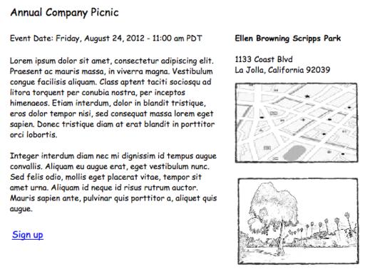 When creating a new content type, I like to do a quick mock-up to get a better picture of how I want the finished product to look. Figure 4 shows what I came up with for my Event.