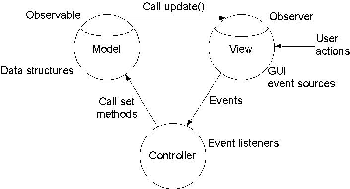 MVC can be more complex than this. For an extremely powerful (but wonderful!) example, see the JFC/Swing components JTable and TableDataModel. However, this presentation presents the basic idea.