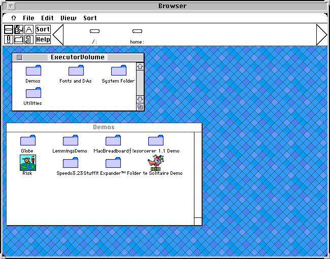 -shift-2 will result in a segmentation fault, and it's “game over” for Executor. Note, however, that this is explicitly an experimental release of Executor, and faults that we encountered may well be corrected in version 2.0, which will probably be released by the time you read this. As mentioned in the FAQ, Executor cannot read 800K Mac disks, because PC floppy drives are physically incapable of doing so. The current version hangs for a long time when a 800K disk is inserted and the disk-check option is selected. This is annoying but should be no problem for most people—if you are aware of it.