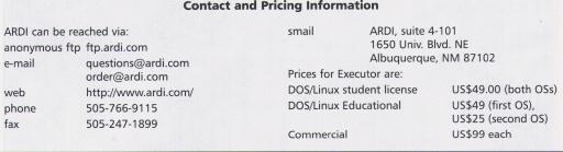Although we were very impressed with the experimental version 1.99x, we recommend saving your work regularly, because of the slightly unstable nature of these pre-beta releases. ARDI promises that Version 2.0, due out in October, 1995, will fix many bugs, making Executor into a very attractive product. Missing from 2.0 will be AppleTalk, sound, serial port access, and support for INITs and CDEVs.