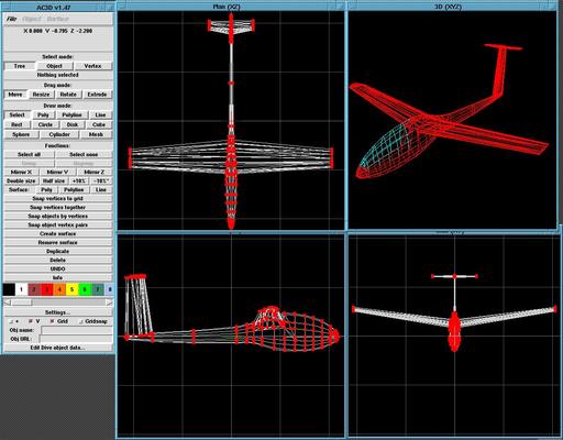Figure 1. AC3D Screen with Imported DXF Model for a Sailplane