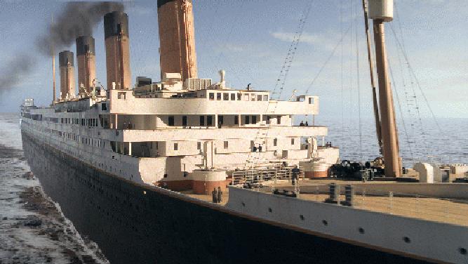 Since building a full-scale model of the Titanic would have been prohibitively expensive, only a portion of the ship was built full size (by the production staff), and miniatures were used for the rest of the scenes. To this model we added other elements of the scene such as the ocean, people, birds, smoke and other details that make the model appear to be docked, sailing or sunk in the ocean. To this end, we built a 3D model and photographed 2D elements to simulate underwater, airborne and land-based photography.