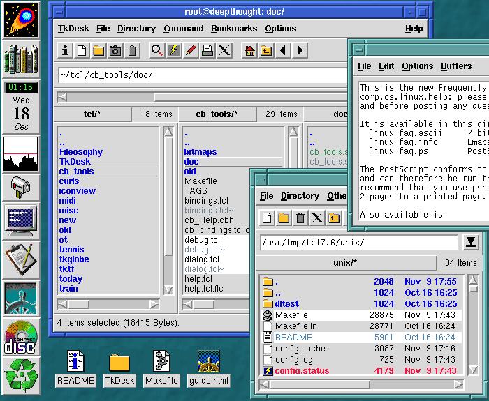 Don't want to give up your Macintosh or Window desktop for Linux? With TkDesk you don't have to.