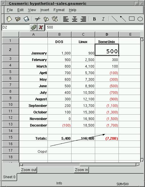 The most recent GNOME release, Bouncing Bonobo, is the first to feature the GNOME spreadsheet Gnumeric.