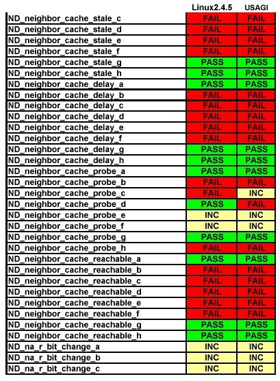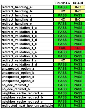 Based on these results, we can see that the USAGI implementation had better results than the Linux kernel implementation; it passed more tests, failed fewer tests and had less inconclusive cases than the Linux kernel implementation.