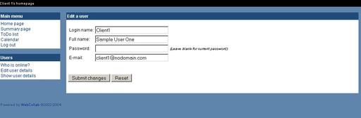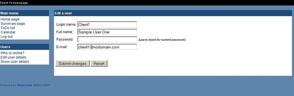 The software consists of an Apache-hosted PHP front end to a database back end. Once the PHP pages are made available with the Web server, any computer with connectivity, a Web browser and user credentials can access WebCollab.