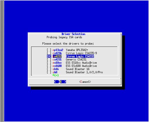 # alsaconf -P opl3sa2 cs4236 cs4232 cs4231 es18xx es1688 sb16 sb8