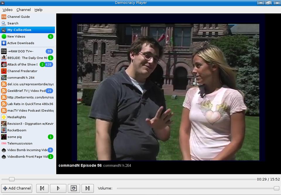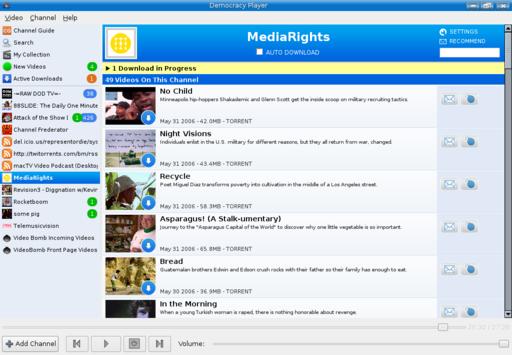 The interface is extremely easy to work with, and nothing takes away from the experience of watching the various channels. Down on the left-hand side is a small menu at the top, with a list of subscribed channels below. Democracy does start up with a handful of subscribed channels, none of which you have to keep, but these channels are a good way to get the feel of the program. If you are like me, you'll want to watch something right away, so let's do that. Click on any channel, and you get a list of the currently available episodes for that show in the main window to the left (Figure 2). This main window, by the way, is also the window where you watch your shows.