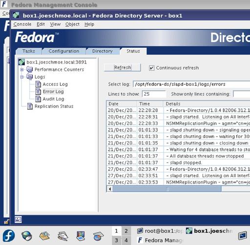 In most enterprise networks today, centralized authentication is a basic security paradigm. In the Linux realm, OpenLDAP has been king of the hill for many years, but for those unfamiliar with the LDAP command-line interface (CLI), it can be a painstaking process to deploy. Enter the Fedora Directory Server (FDS). Released under the GPL in June 2005 as Fedora Directory Server 7.1 (changed to version 1.0 in December of the same year), FDS has roots in both the Netscape Directory Server Project and its sister product, the Red Hat Directory Server (RHDS). Some of FDS's notable features are its easy-to-use Java-based Administration Console, support for LDAP3 and Active Directory integration. By far, the most attractive feature of FDS is Multi-Master Replication (MMR). MMR allows for multiple servers to maintain the same directory information, so that the loss of one server does not bring the directory down as it would in a master-slave environment.