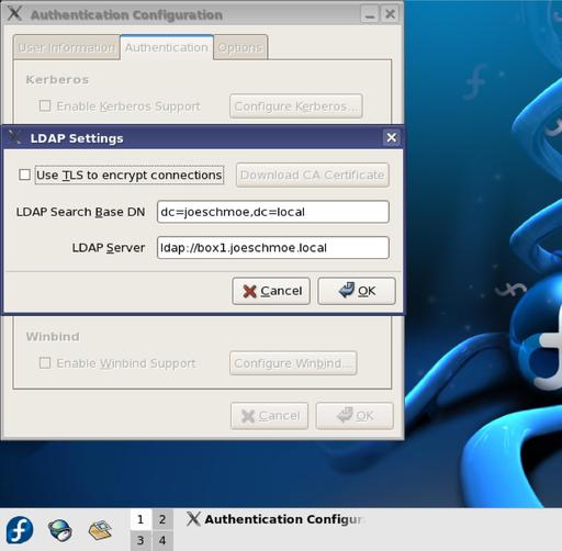 With our infrastructure in place, we can connect our desktop clients. For our configuration, we use native Fedora 6 clients and Windows XP clients to simulate a mixed environment. Other Linux flavors can connect to FDS, but for space constraints, we won't delve into connecting them. It should be noted that most distributions like Fedora use PAM, the /etc/nsswitch.conf and /etc/ldap.conf files to set up LDAP authentication. Regardless of client type, the user account attempting to log in must contain Posix information in the directory in order to authenticate to the FDS server. To connect Fedora clients, use the built-in Authentication utility available in both GNOME and KDE (Figure 9). The nice thing about the utility is that it does all the work for you. You do not have to edit any of the other files previously mentioned manually. Open the utility and enable LDAP on the User Information tab and the Authentication tabs. Once you click OK to these settings, Fedora updates your nsswitch.conf and /etc/pam.d/system-auth files immediately. Upon reboot, your system now uses PAM instead of your local passwd and shadow files to authenticate users.