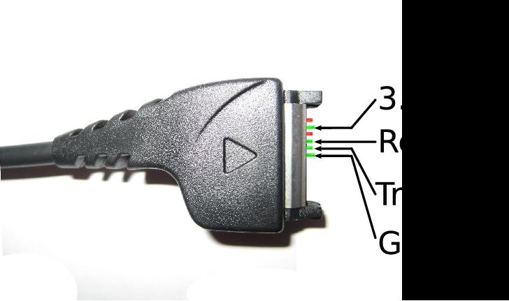 Figure 3 provides a picture of a Nokia DKU-5 cable connector. The other side of the cable has a USB connector. Cut the cable in half so that most of its length is on the USB connector side. Now, expose the six leads on the Nokia connector side. Use a continuity tester to identify which four of the six leads correspond to the functional pins noted in Figure 3. Note the insulator color of the lead connected to each pin. Now focus your attention to the other half of the cable, the one with the USB connector. Expose the four leads matching the colors noted earlier. Connect each of these leads to the four of five binding posts labeled in Figure 4, ensuring that the lead and post functions match. You may connect them using a PCB connector, hook to pico hook jumpers or a more primitive technique.