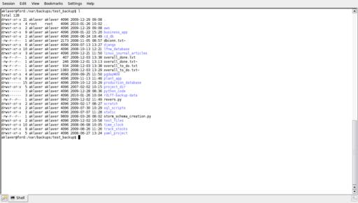 Finally, here are some general observations on the incremental nature of the backups. The amount of space saving is dependent on usage. rdiff-backup saves all information, so if you do a lot of deletes, the backup directory will fill up with the deleted files unless you prune regularly. As described earlier, the block nature of the file comparison is not efficient for small changes across multiple blocks. I bring this up as a prompt to have you monitor the disk space for your destination directory for a period of time until you have a sense of how your usage pattern affects it. On the whole though, I have found rdiff-backup provides a good compromise between backup size and backup versatility.