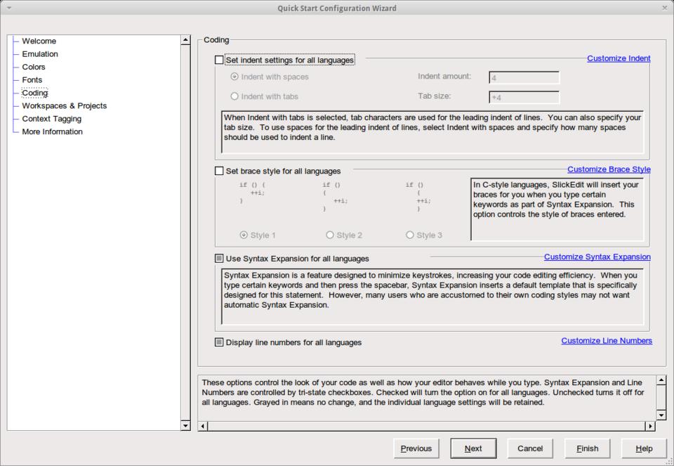 During the Quick Start Wizard, you start to see some of SlickEdit's neat features. Figure 2 shows the configuration screen for selecting keyboard emulation. If you're used to a particular set of keybindings (like vim in my case), SlickEdit can use those familiar keybindings by default. You even can customize the emulation if your needs don't line up with the dozen-plus emulation options offered.