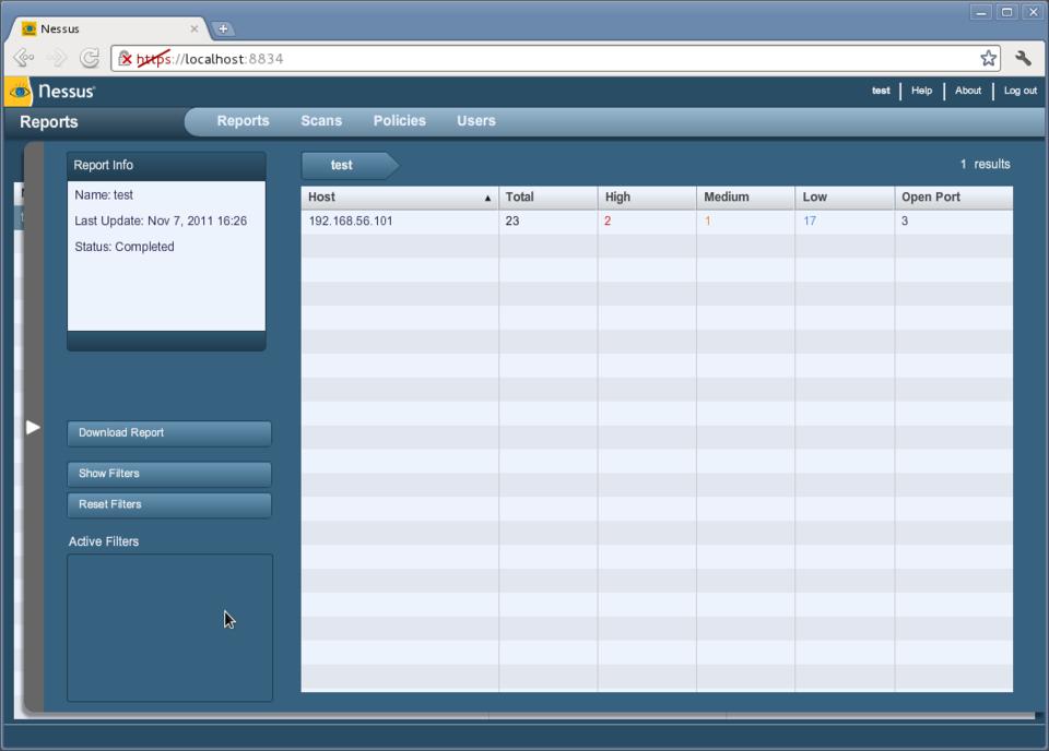 Installation is pretty straightforward; just follow the steps from each tool's respective site, and you'll be fine. As soon as the tools are installed, it's time to start playing with them. I highly recommend that you have either a virtual machine or a test machine of some sort as your first target, so as not to crash anything critical. Nothing's worse than running a scan against a box, only to find out that you crashed it by accident (very high possibility with Nessus and Metasploit, depending on what you are doing) and interrupted someone's work.