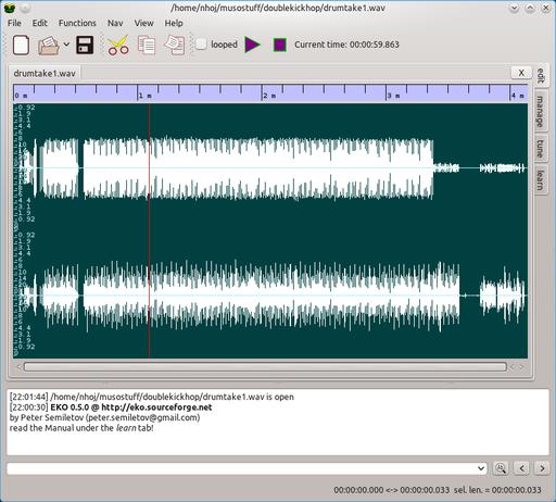 Inside the EKO screen, things actually are pretty easy and intuitive, and EKO's main features are obviously placed. Right from the get-go, EKO is ready to open a sound file and start editing, and rather tellingly, the FX rack also opens at startup (an instant picture of the author's feature wishes and EKO's design principles).