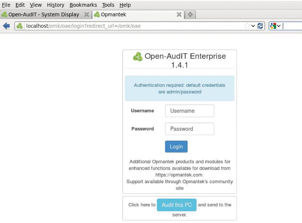 Figure 4. Open-AudiT logon screen—you also can use the “Audit this PC” button to inventory the client.